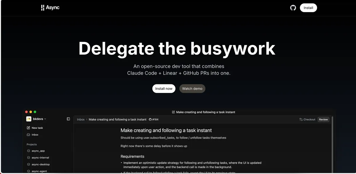 Async - 像 Claude Code + Linear + GitHub PR 的开源开发工具。 - 初创.work