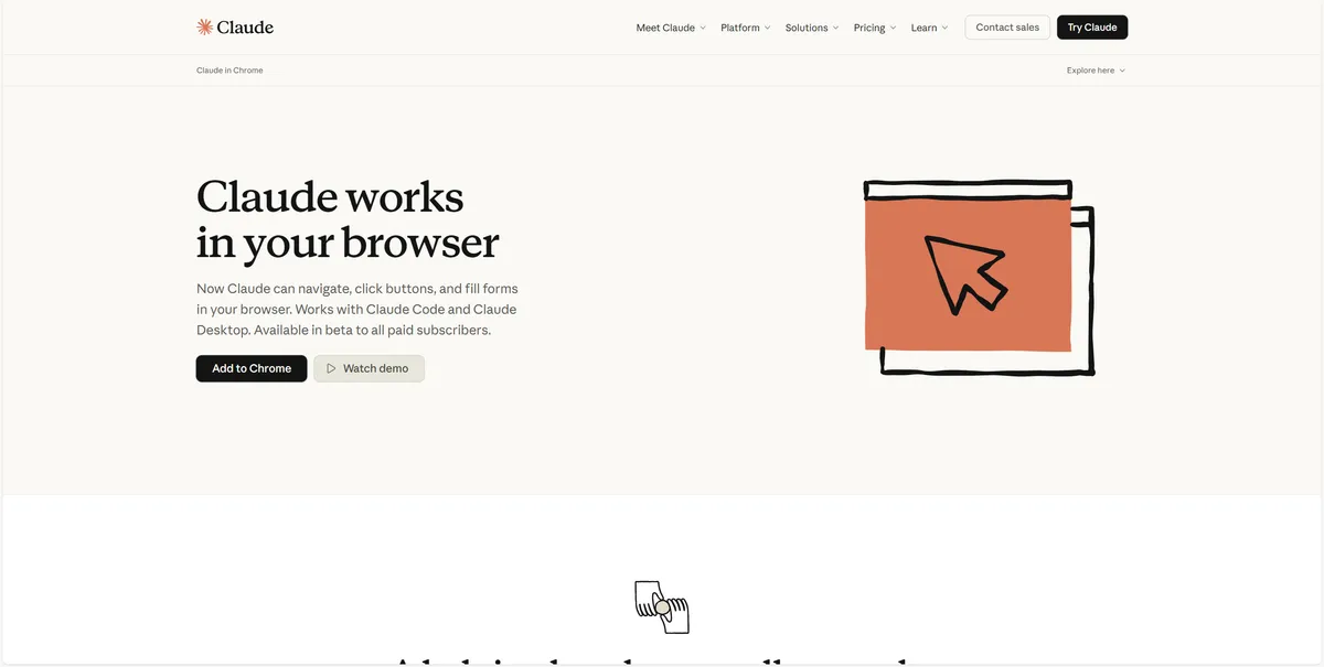 Claude in Chrome - 让 Claude 在浏览器中工作的拓展插件。 - 初创.work