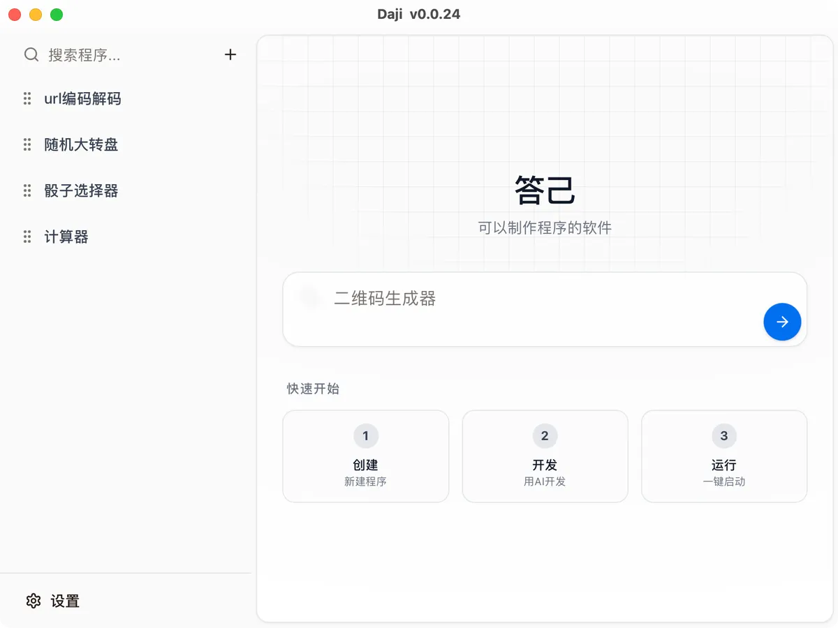 答己 - 能用 AI 制作程序的软件。 - 初创.work