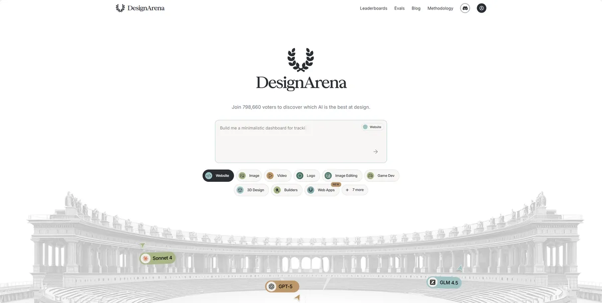Design Arena - 基于真实用户投票的 AI 设计能力评测平台。 - 初创.work