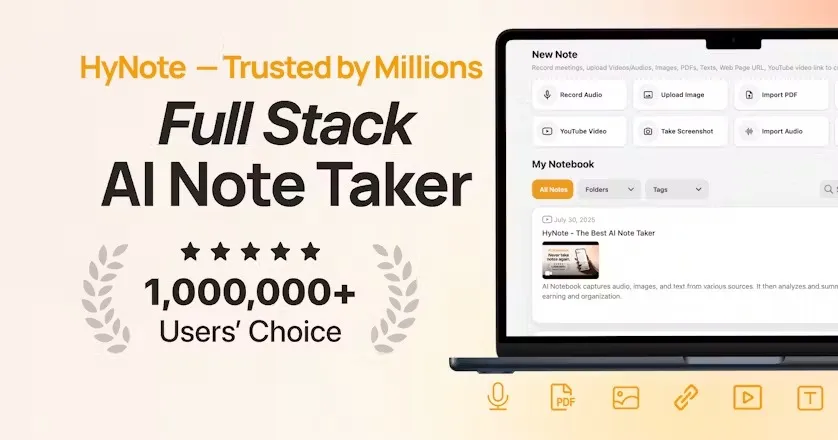 HyNote AI - AI 笔记记录器:音频转录,会议记录,PDF摘要。 - 初创.work