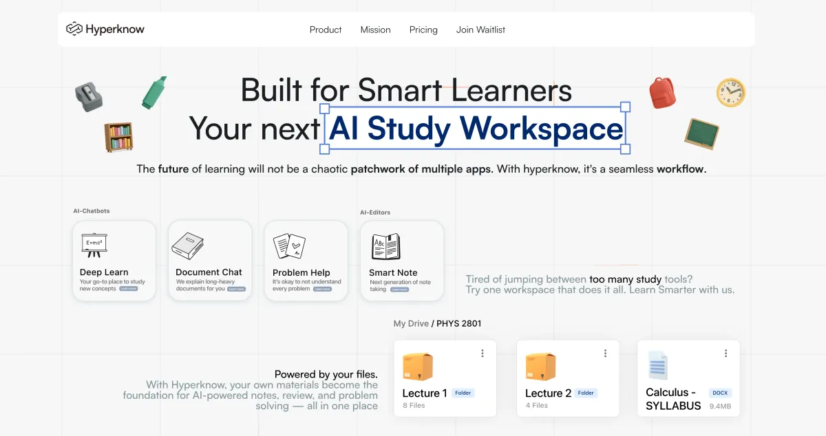 Hyperknow - 专为学生设计的学习辅助 Agent。 - 初创.work