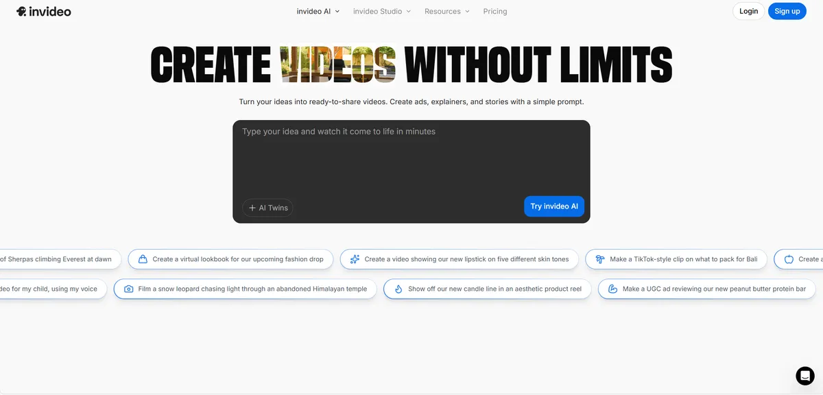 invideo AI 是一款基于人工智能的视频创作平台,用户只需输入文字提示即可快速生成成品视频。