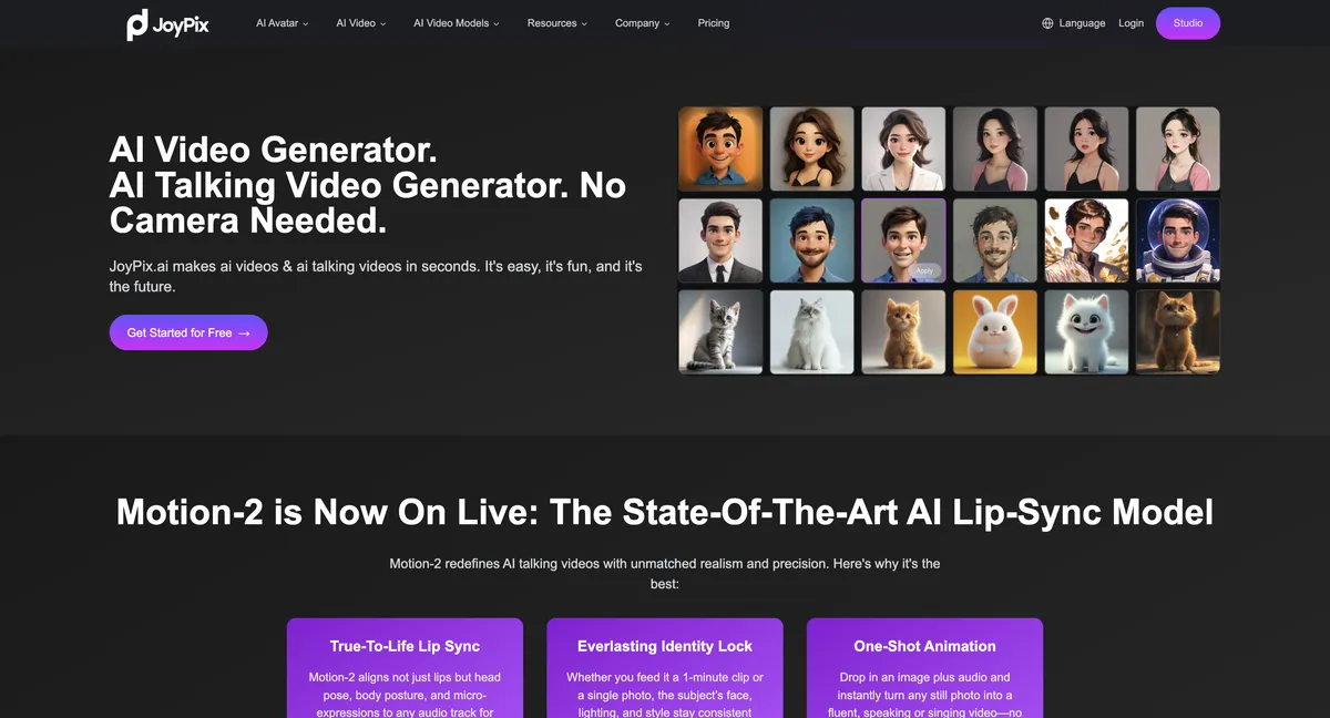 JoyPix AI - JoyPix AI是一款AI视频生成产品,支持文字/图片转视频,具备自然口型同步、AI头像生成、语音克隆及多角色对话功能。 - 初创.work