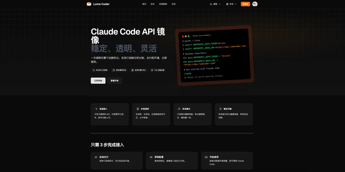 LumeCoder - Claude Code API 镜像,稳定、透明、灵活。 - 初创.work