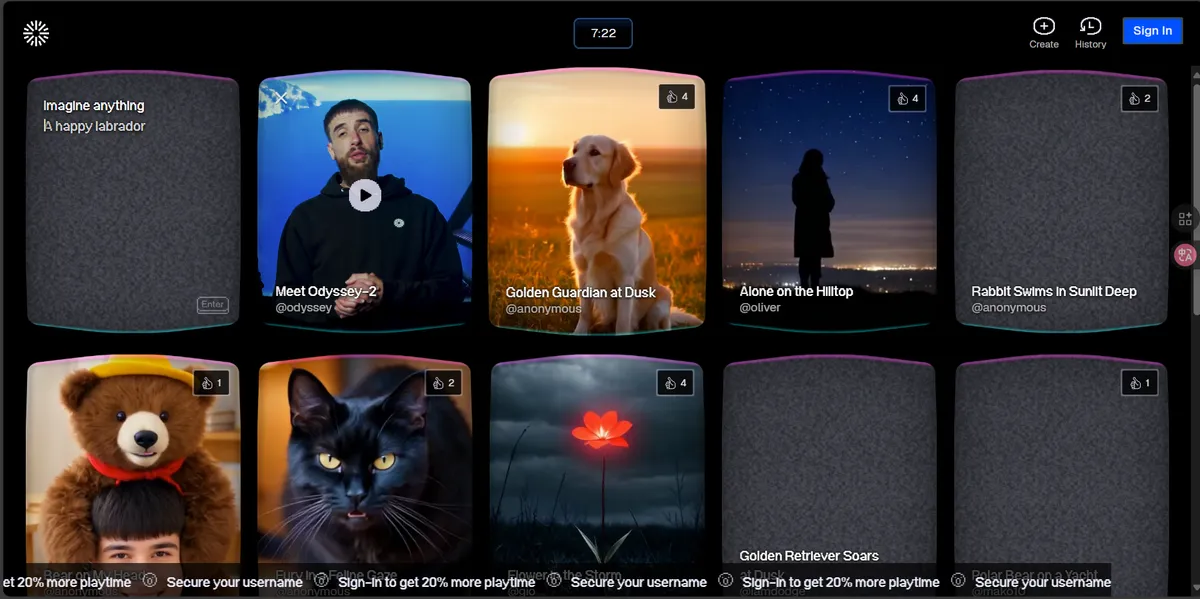 Odyssey 是一个在线 AI 视频工具平台,核心功能围绕 “即时生成” 和 “可交互” 两大特性展开,专注解决用户在 AI 视频制作与使用中的效率及体验需求。