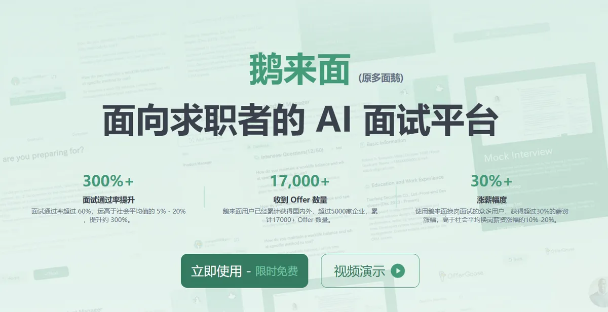 鹅来面 - 面向求职者的 AI 面试平台。 - 初创.work