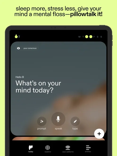 通过专为帮助你解析情感、人际关系和行为模式而设计的对话式 AI 探索你的想法。无论你是在记录梦境、管理压力,还是培养正念习惯,Pillowtalk 都是你的个人日记助手,帮助你活得清晰而有目标。