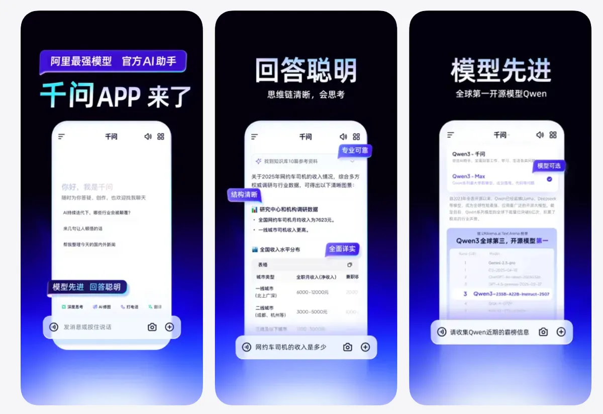 千问APP是阿里最强大模型官方AI助手,是体验最新、最强Qwen大模型的第一入口。