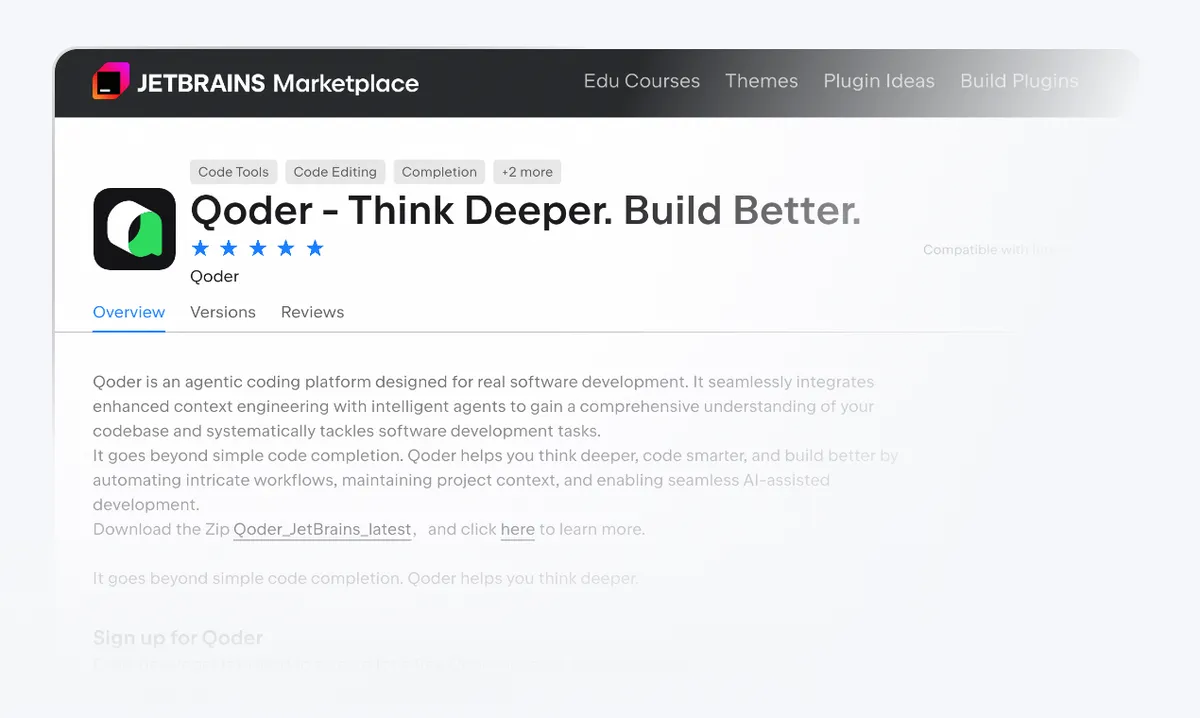 已上架 JetBrains 市场: https://plugins.jetbrains.com/plugin/28926-qoder–think-deeper-build-better-