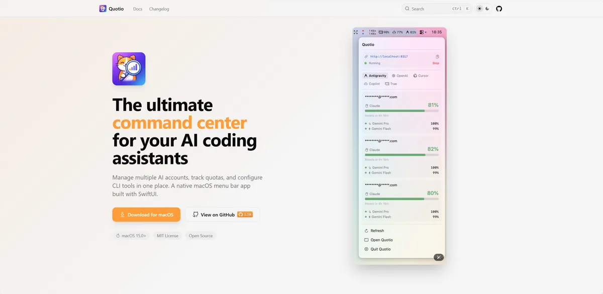Quotio - 管理多个 AI Coding Agent 额度的 macOS 菜单栏应用。 - 初创.work