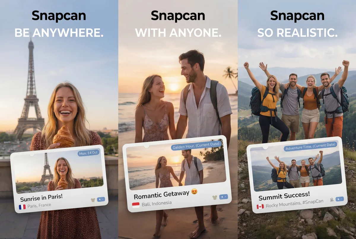 Be Anywhere. Instantly. SnapCan is an AI-powered creative camera designed to defy the limits of space and time. We believe that distance, bad weather, or a missed shutter shouldn’t stand in the way of a perfect memory. SnapCan doesn’t just edit pixels; it recreates the moments you wish had happened.