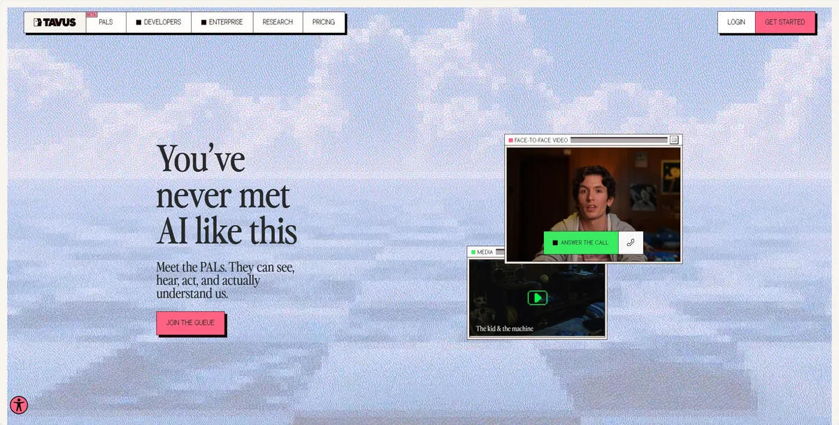 Tavus PALs 是一款超现实的 AI 助手产品,支持文字聊天、语音通话和视频面对面交互。