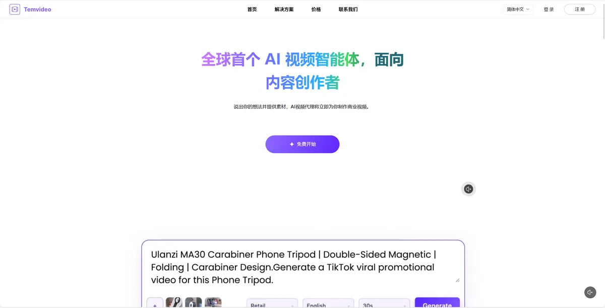 Temvideo - 专为跨境电商营销设计的视频制作 Agent。 - 初创.work