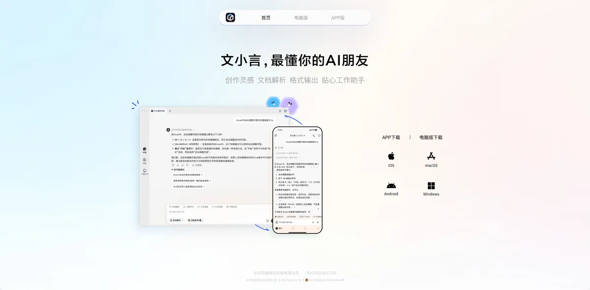 文小言 - 百度旗下基于文心大模型的搜索智能助手,提供多模态搜索、问题解答、文章创作、语聊数字人、专业智能体等AI能力。 - 初创.work