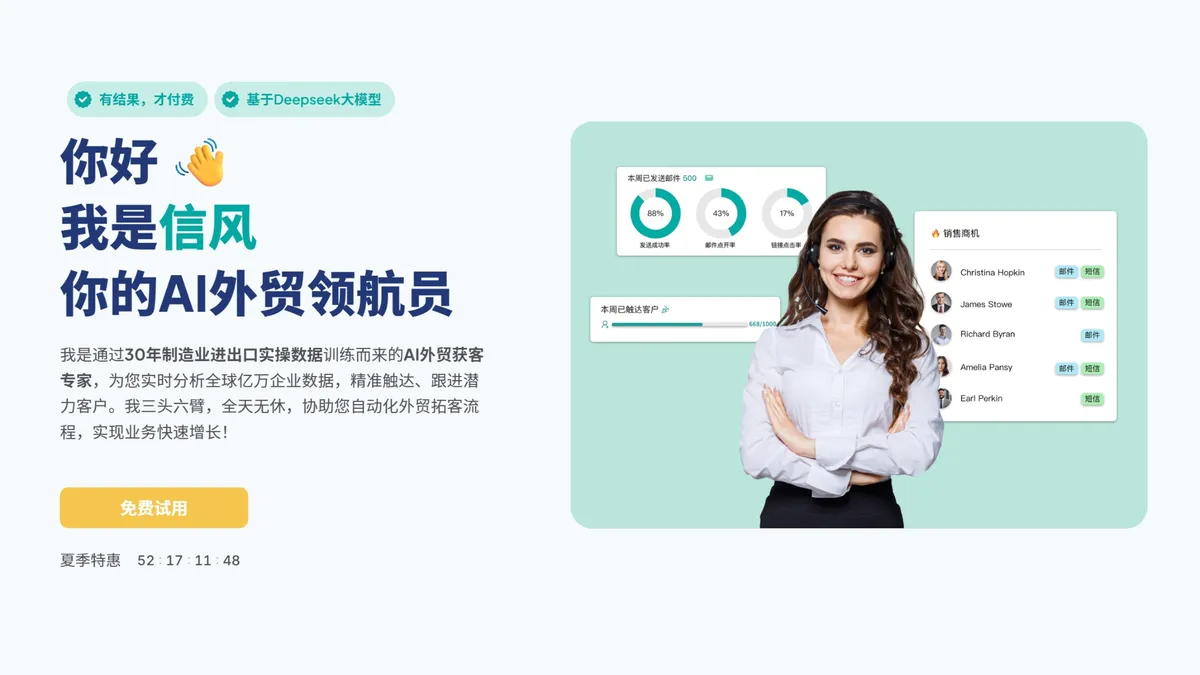 信风AI拓客 - 基于前沿AI技术的拓客工具,能实时搜索企业数据,精准锁定潜力客户,专为制造业和工业品企业出海打造。 - 初创.work