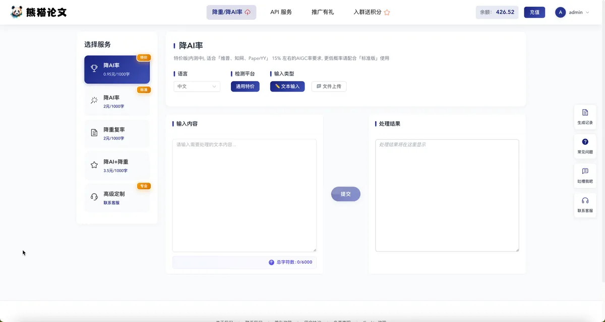 熊猫论文 - AI 文档改写平台。 - 初创.work