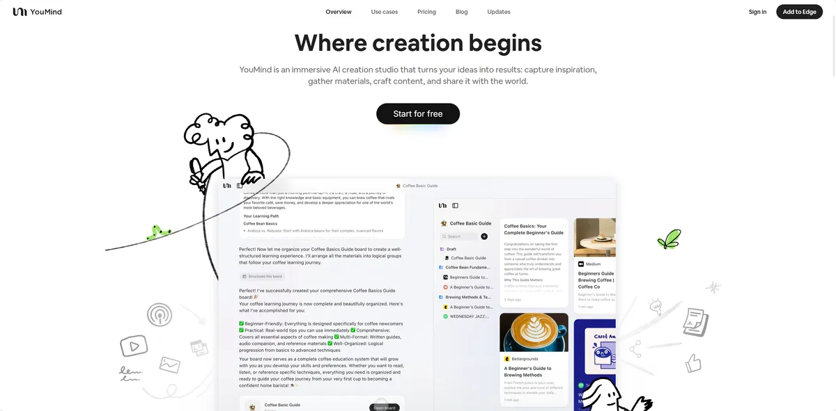 YouMind - YouMind是一款浏览器扩展和网页应用,通过AI助手帮助您保存、研究、整理、撰写和分享想法。 - 初创.work