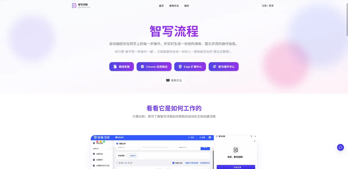 智写流程 - 捕捉网页行为生成操作文档的工具。 - 初创.work